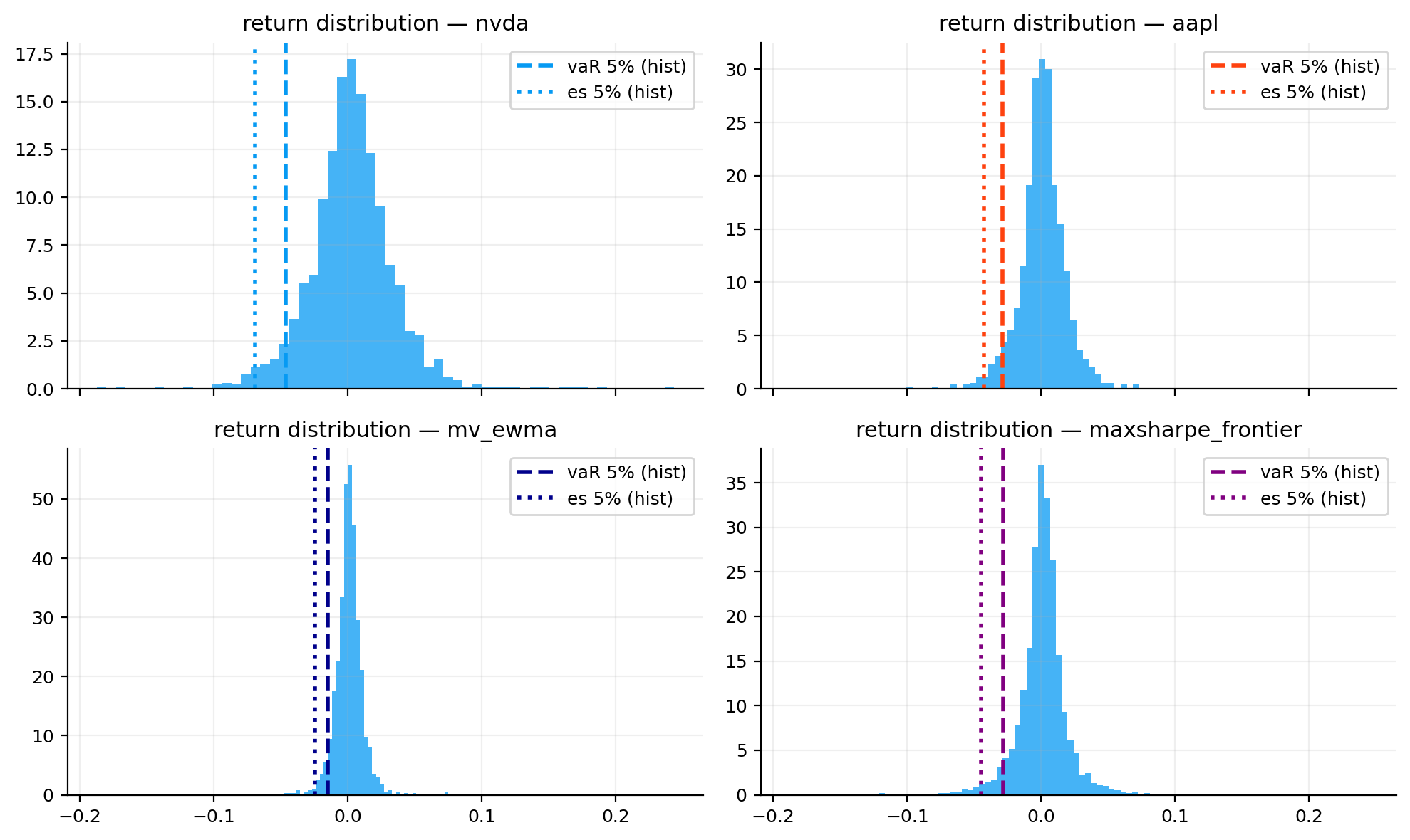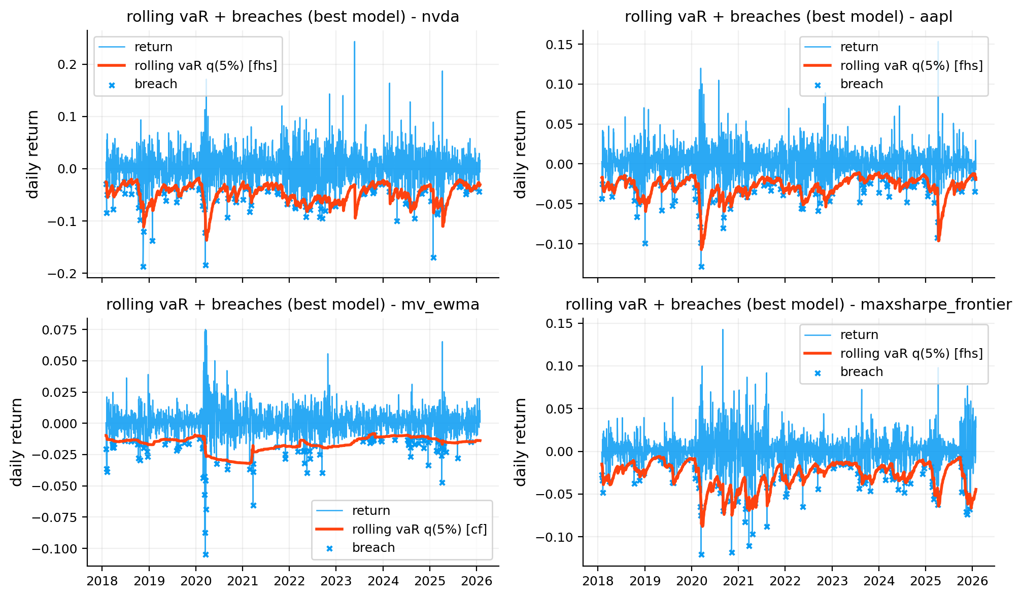 - tail risk (vaR / expected shortfall) + backtests