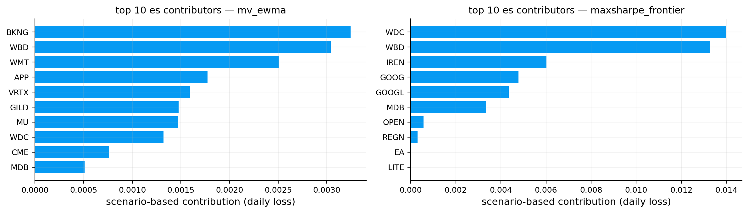 - Lower historical ES tail risk: minvar_sample (1.85%).